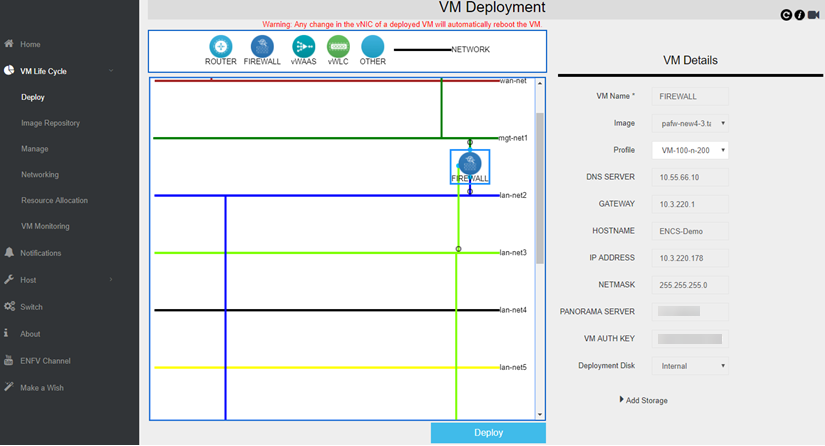 1. In Enterprise NFVIS, click VM Life CycleDeploy.
