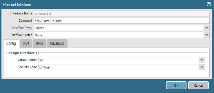 • Also on the Config tab, expand the Security Zone drop-down and select New Zone. Define a new zone called UnTrust for example, and then click OK.