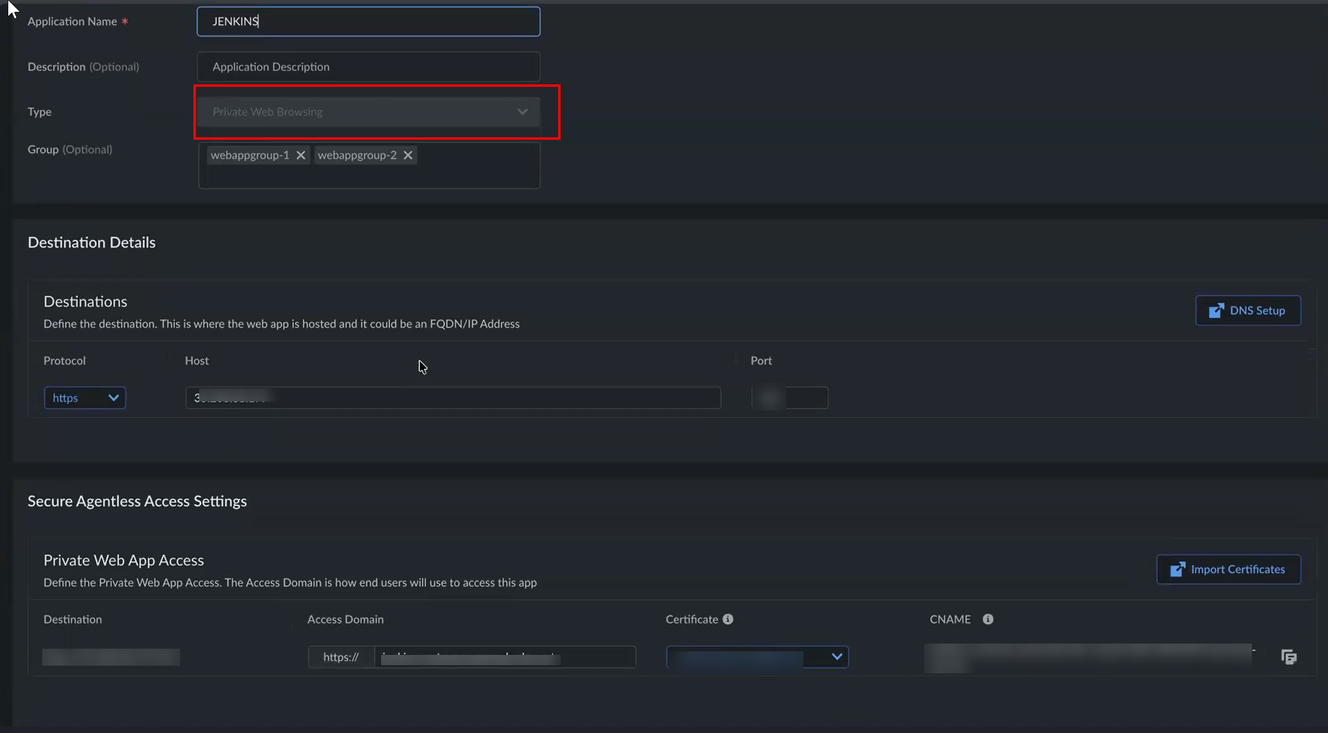 Private and Public Web Application Access for Secure Agentless Access